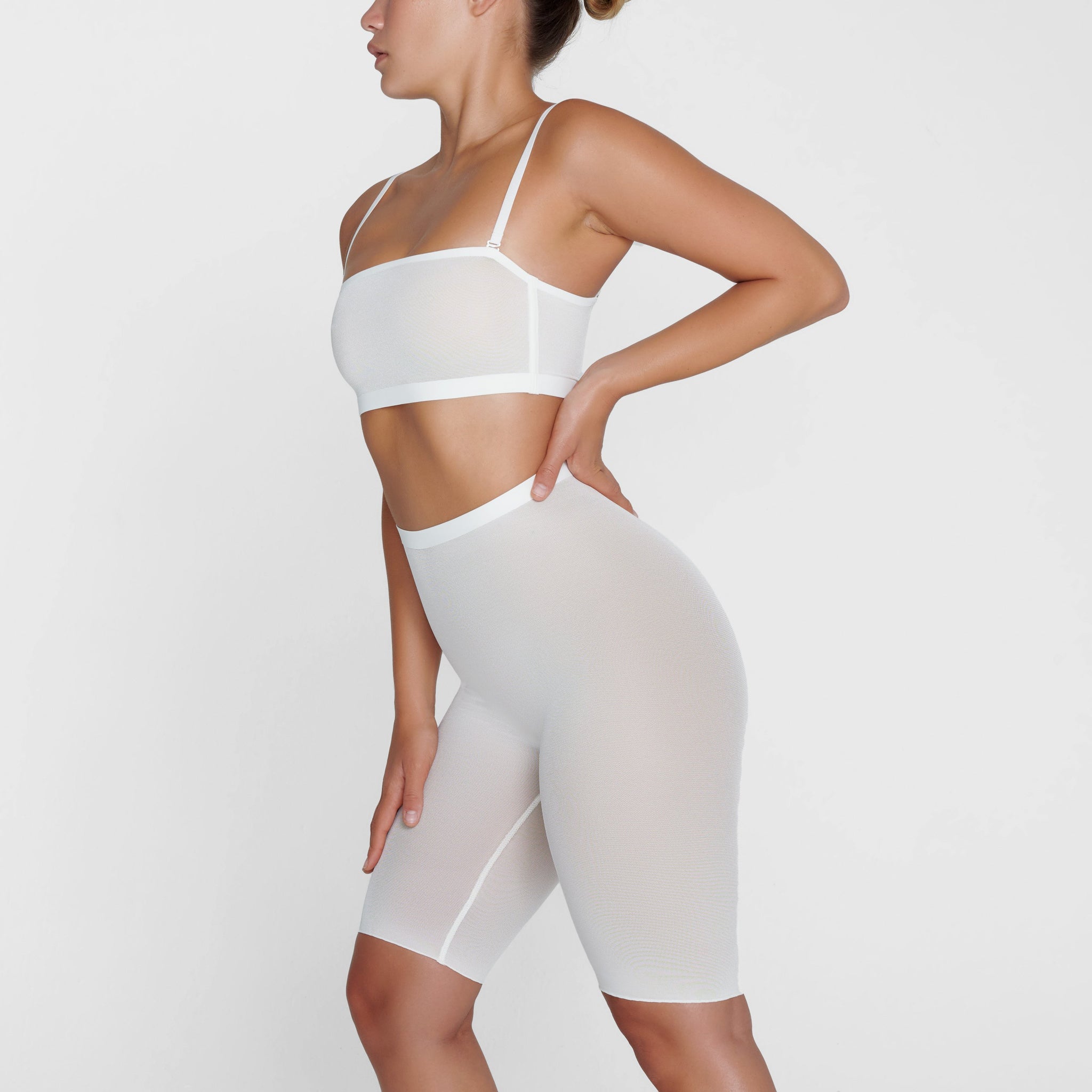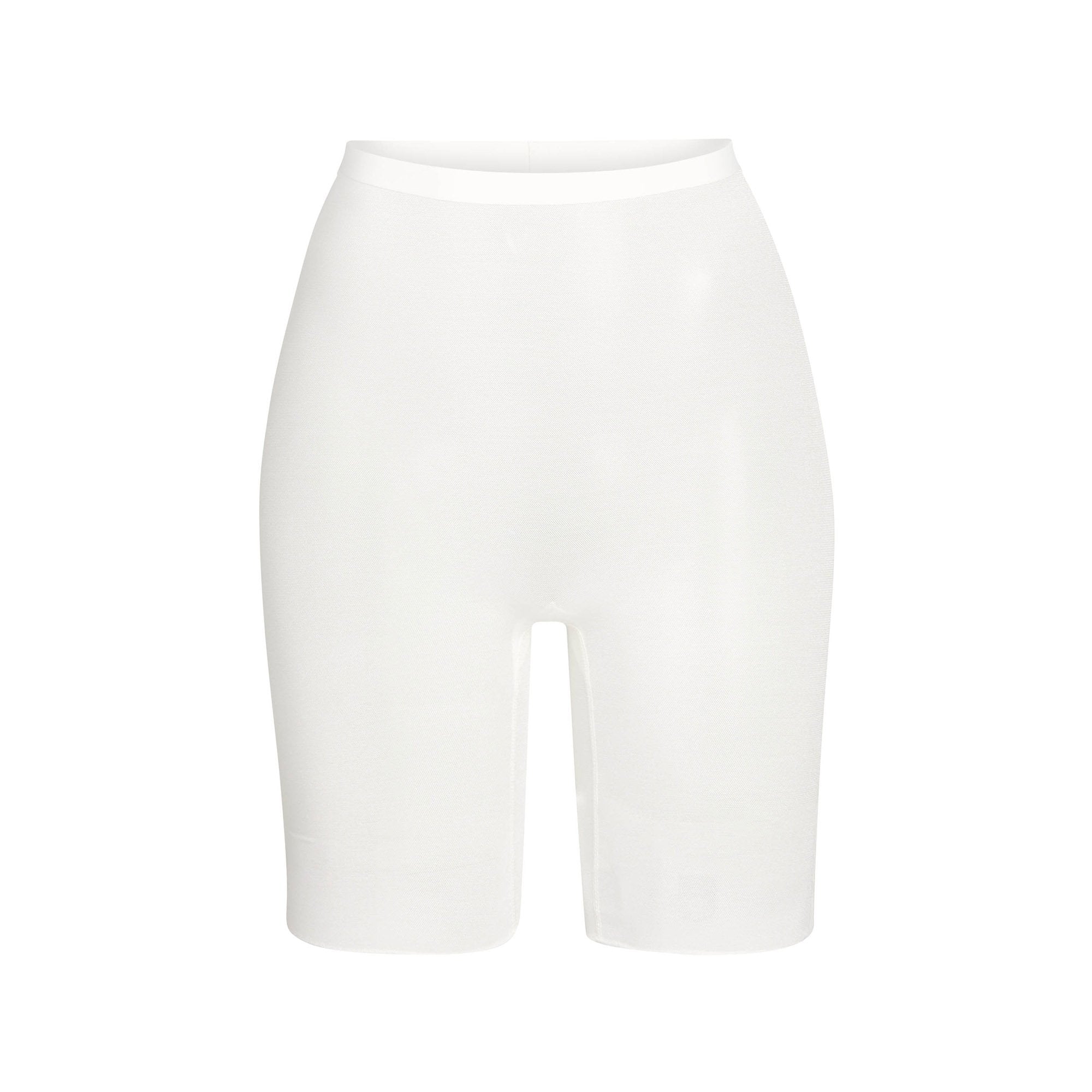 With its mid-thigh length and high-waist rise, this sheer short holds in your core, smooths your thighs, and shapes and lifts your butt. Its silky construction makes this piece an unexpected essential for enhancing your body’s natural shape.