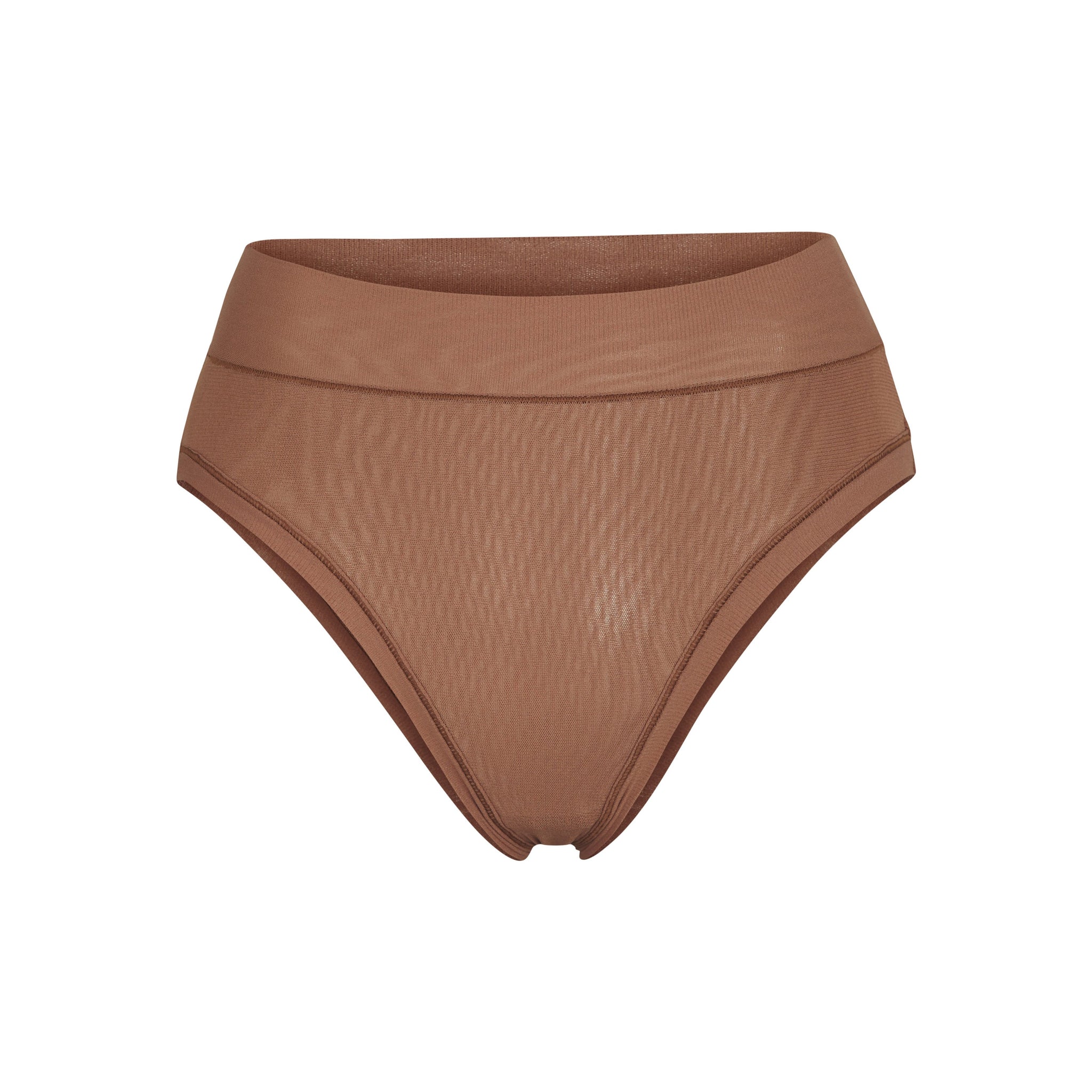 The Summer Mesh Brief has a cheeky, high waist cut that is meant to support and flatter your body while offering breathability and comfort. Made to layer under clothing or pair with Summer Mesh bralettes as luxe, cooling loungewear.
